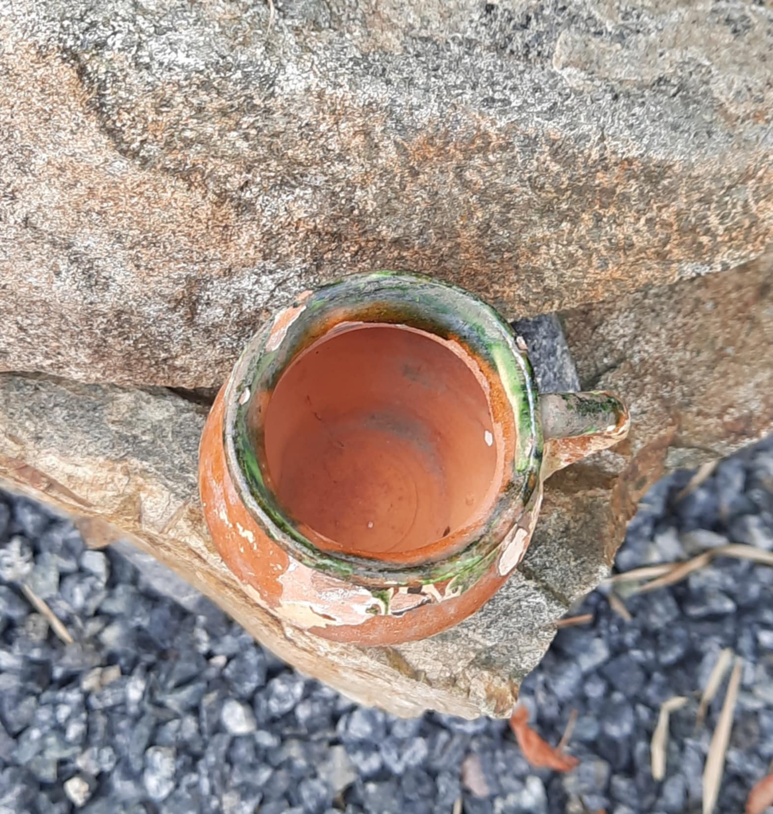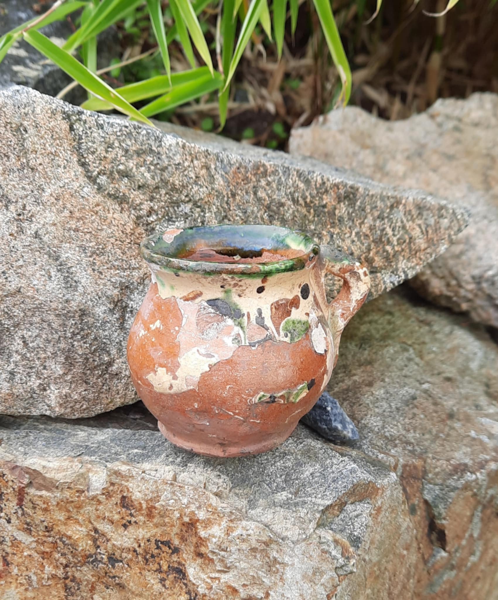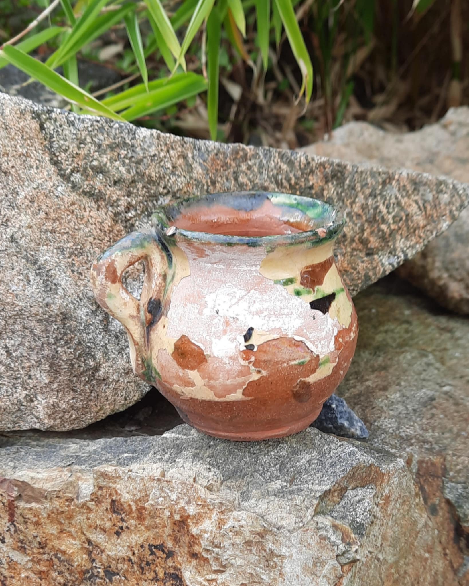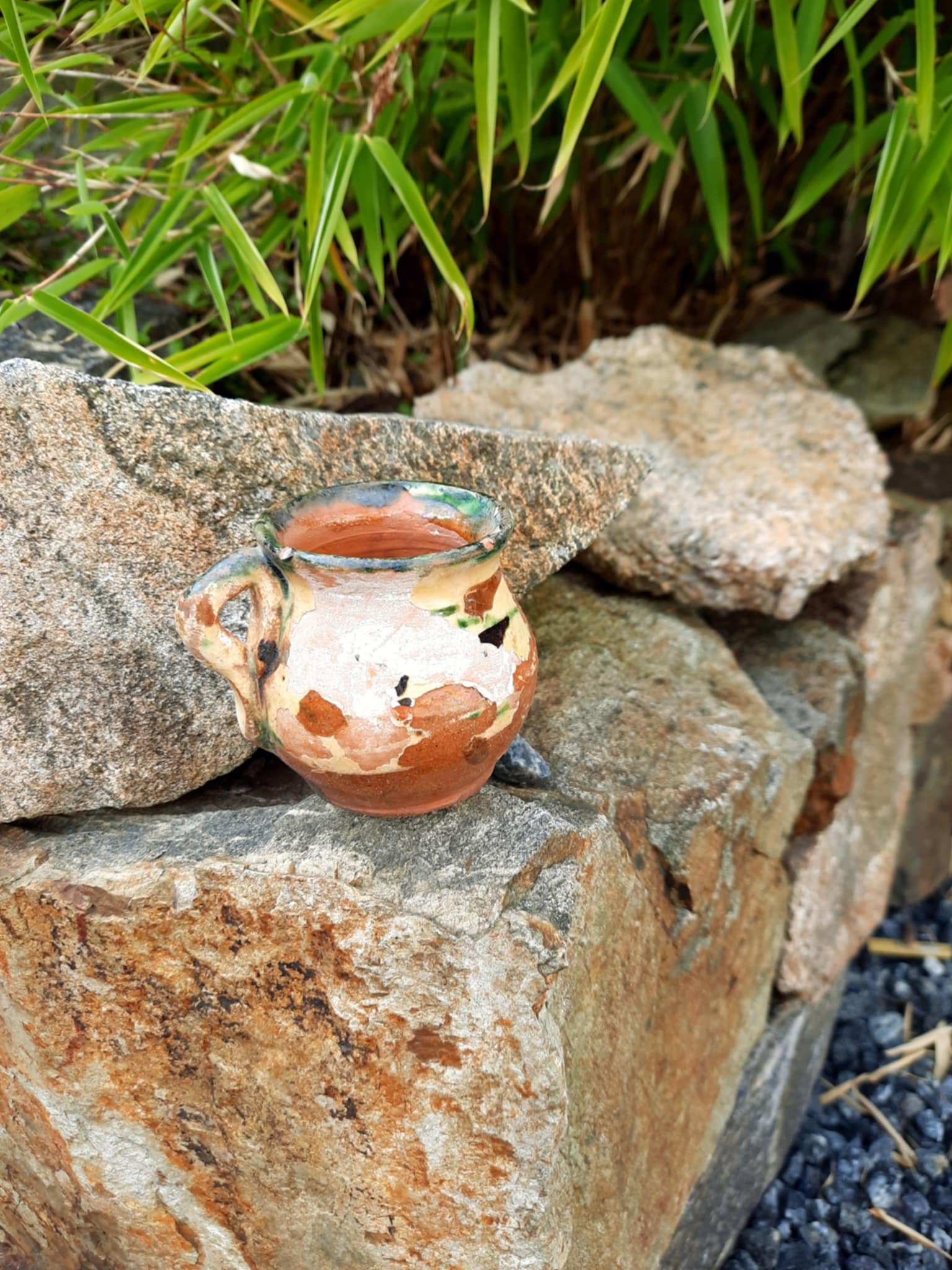 Nydelig bitte liten Keramik mugge/krukke på kun 6 cm. Denne er funnet i Frankrike , men kan også være fra Ungarn, Tyrkia eller Belgia, da de har veldig lik utførsel i de forskjellige landene. Men at den er flott er iallefall helt sikkert ❤️ Den bærer preg av å være godt brukt, full av patina ❤️