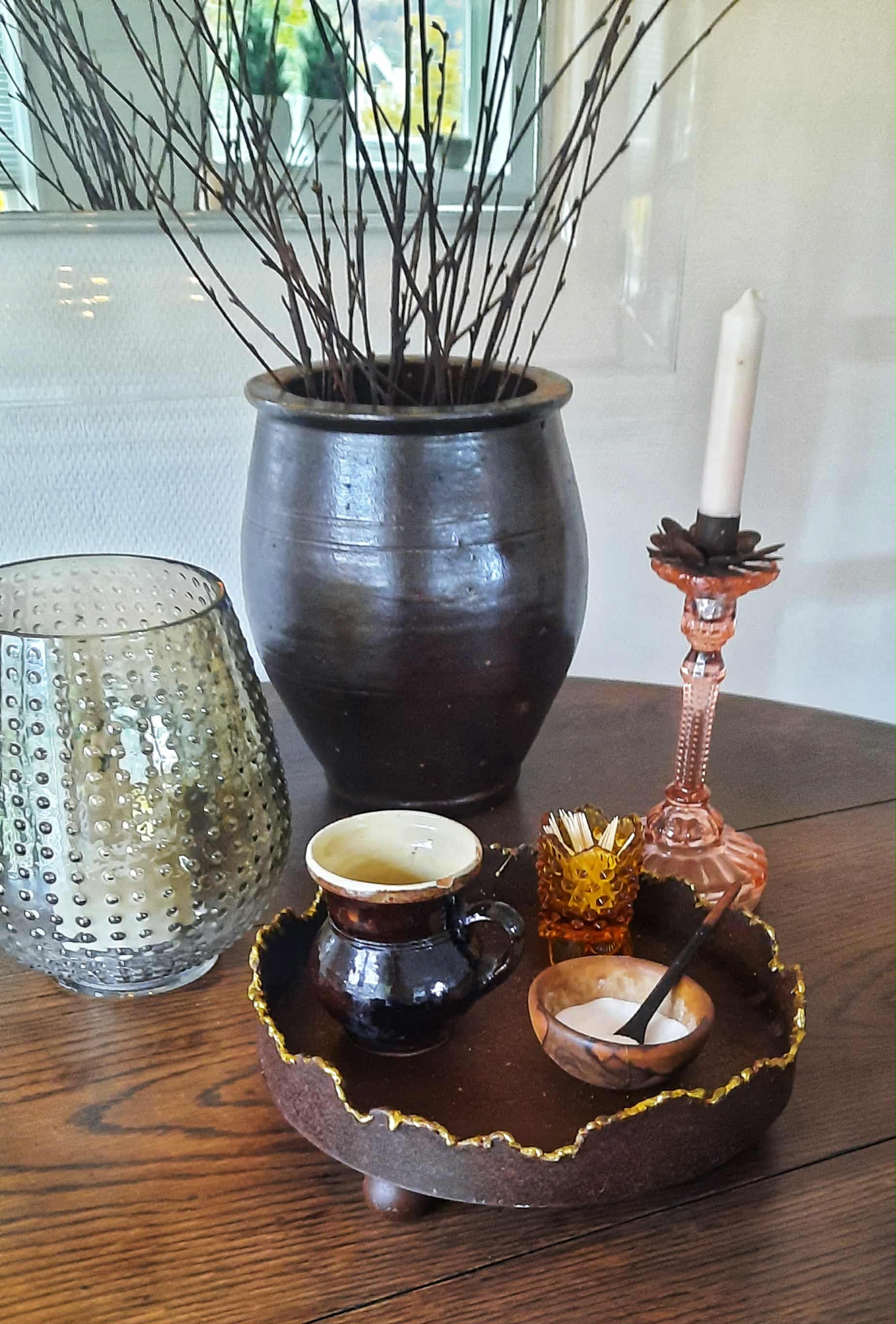 Nydelig fat i Cortenstål med "gullkant" og kulebein.