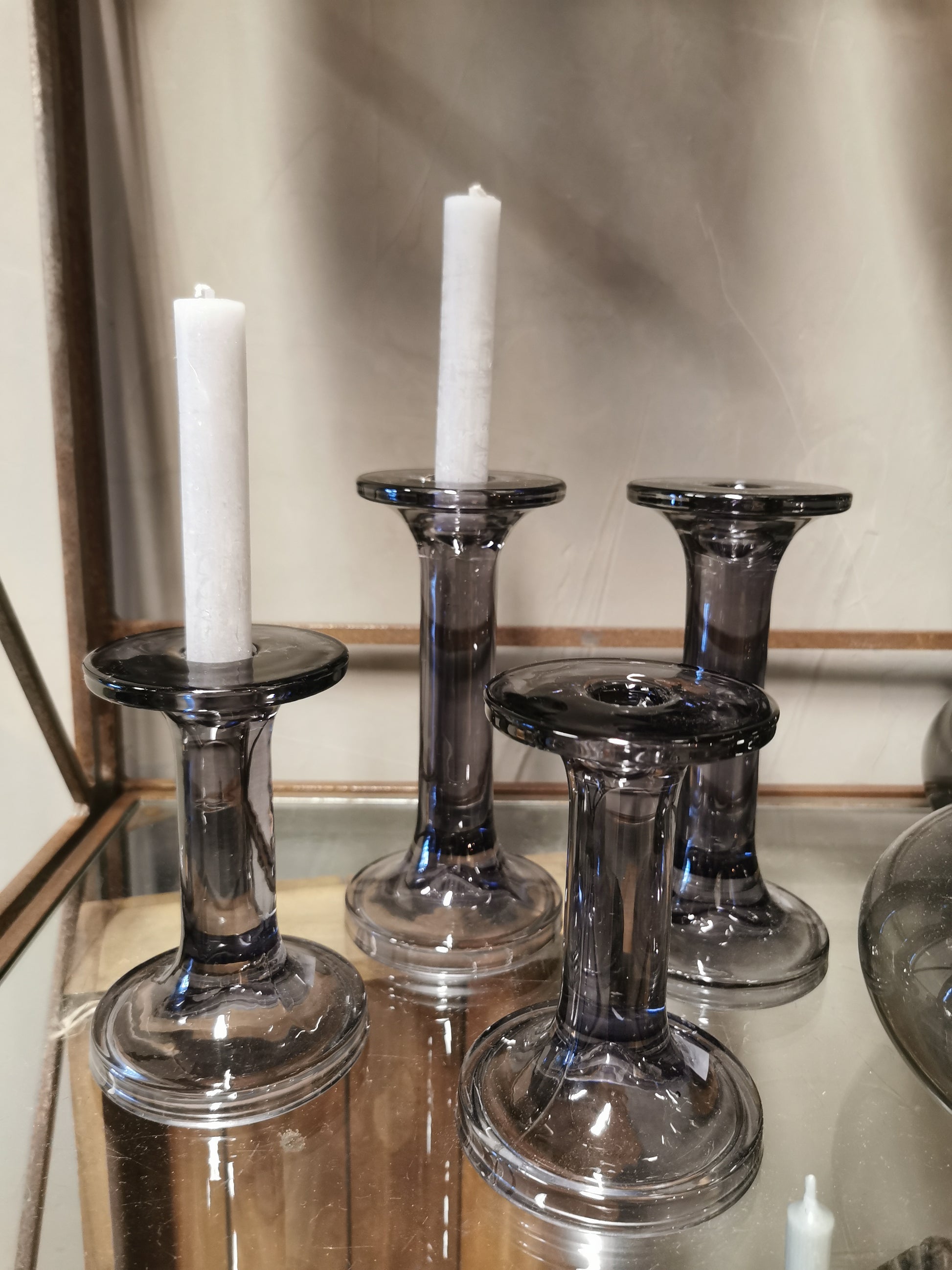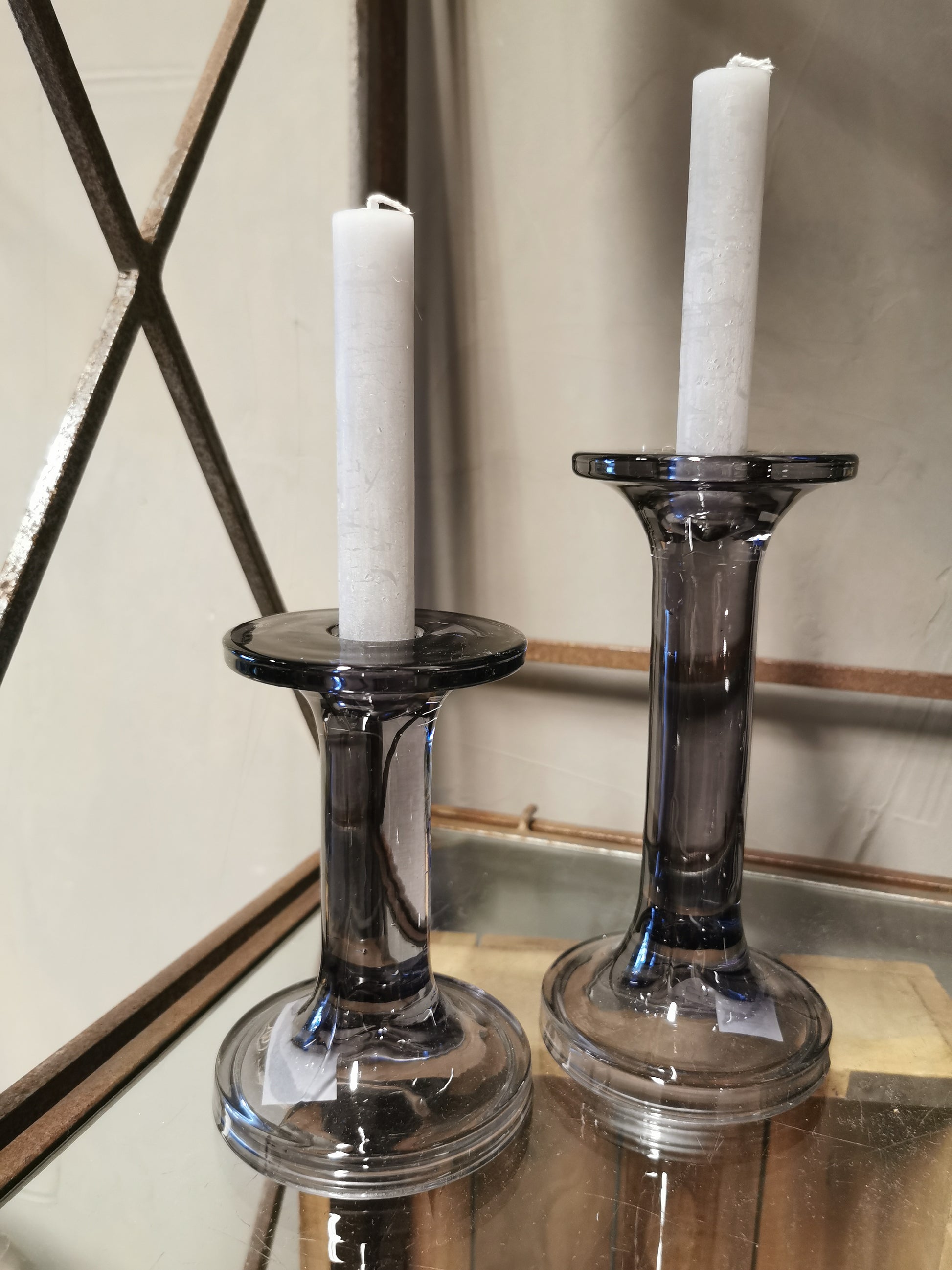 Enkel men nydelig lysestake i glass, fargen smoke. Denne er 19cm men finnes også i 13cm.