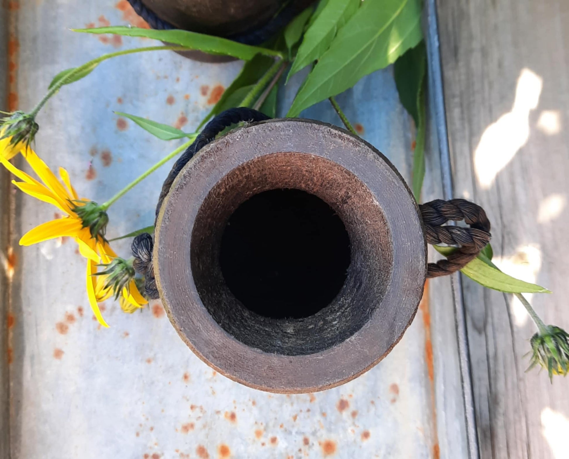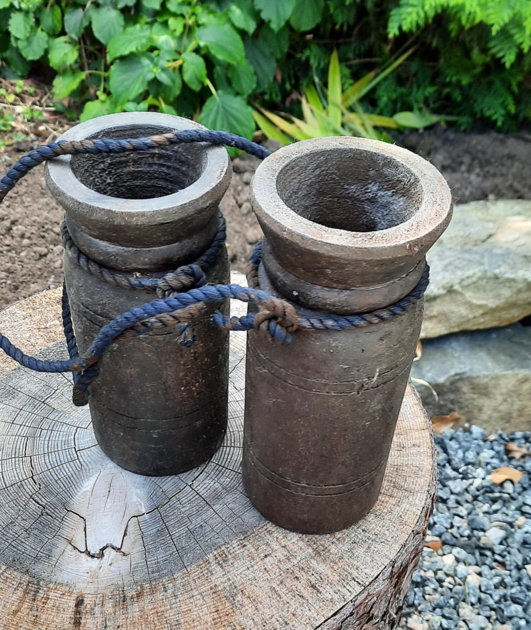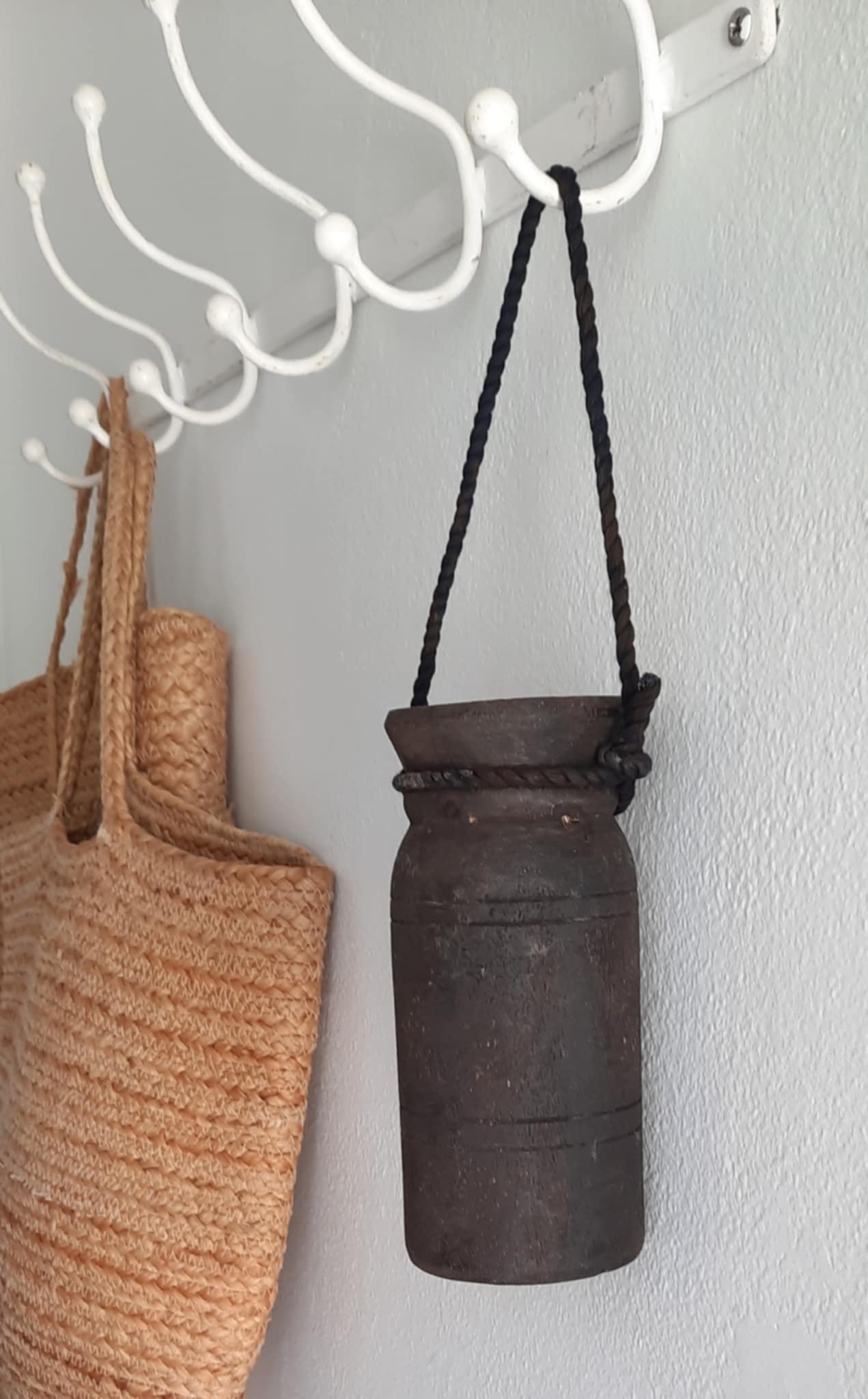 Små Indiske trekrukker, håndlaget. Disse små krukkene ble laget til oppbevaring av krydder og annet smått på kjøkkenet.