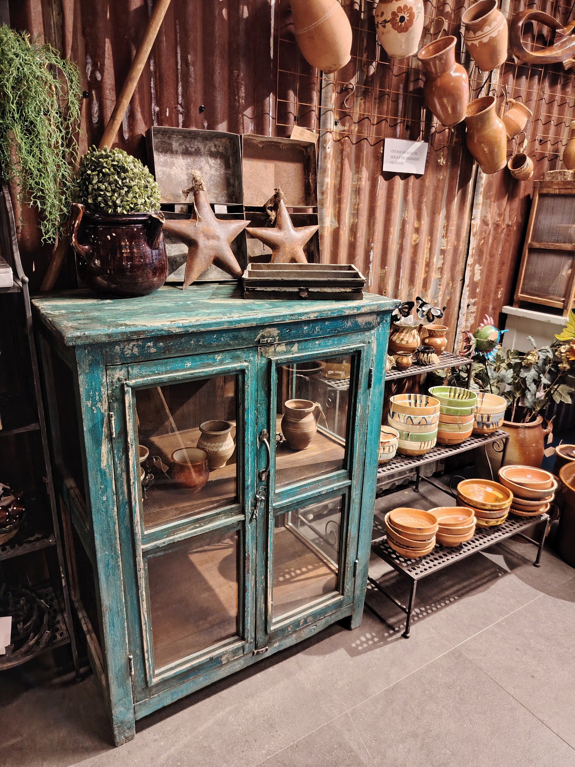 Gammelt håndlaget skap fra India, er restaurert men det er brukt gjenbruksmaterialer .