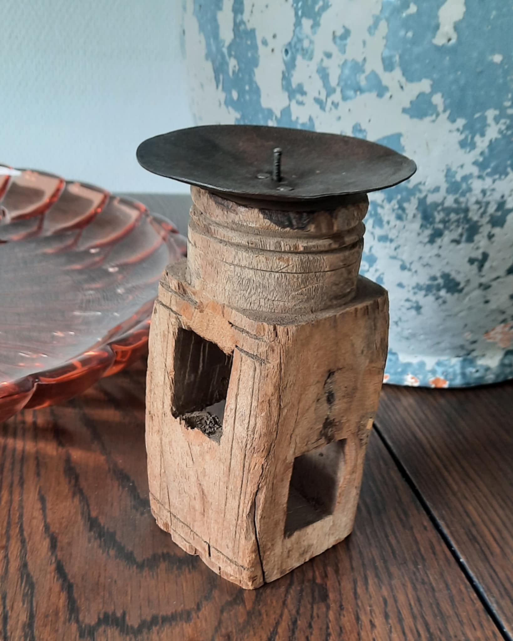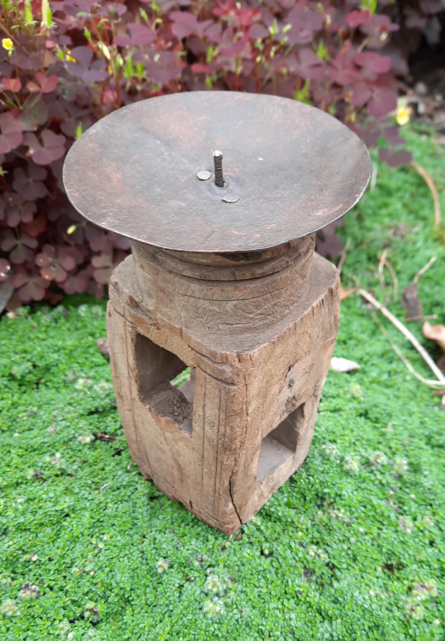 Nydelig Indiske lysestaker, laget av gamle nav fra kjerrer og annet. Hver og en er unik og har sin egen sjarm og sjel ❤️