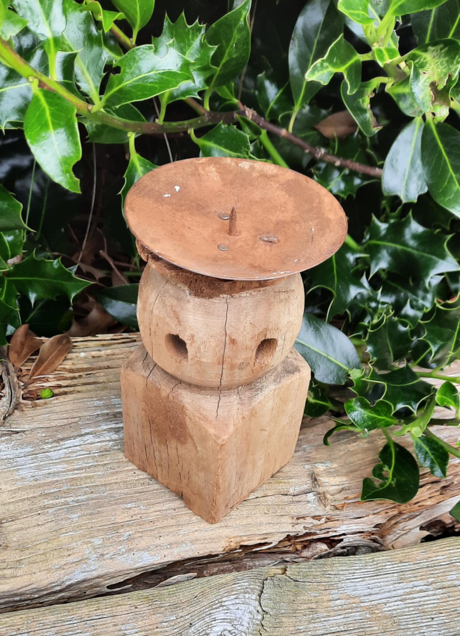 Nydelig Indiske lysestaker, laget av gamle nav fra kjerrer og annet. Hver og en er unik og har sin egen sjarm og sjel ❤️