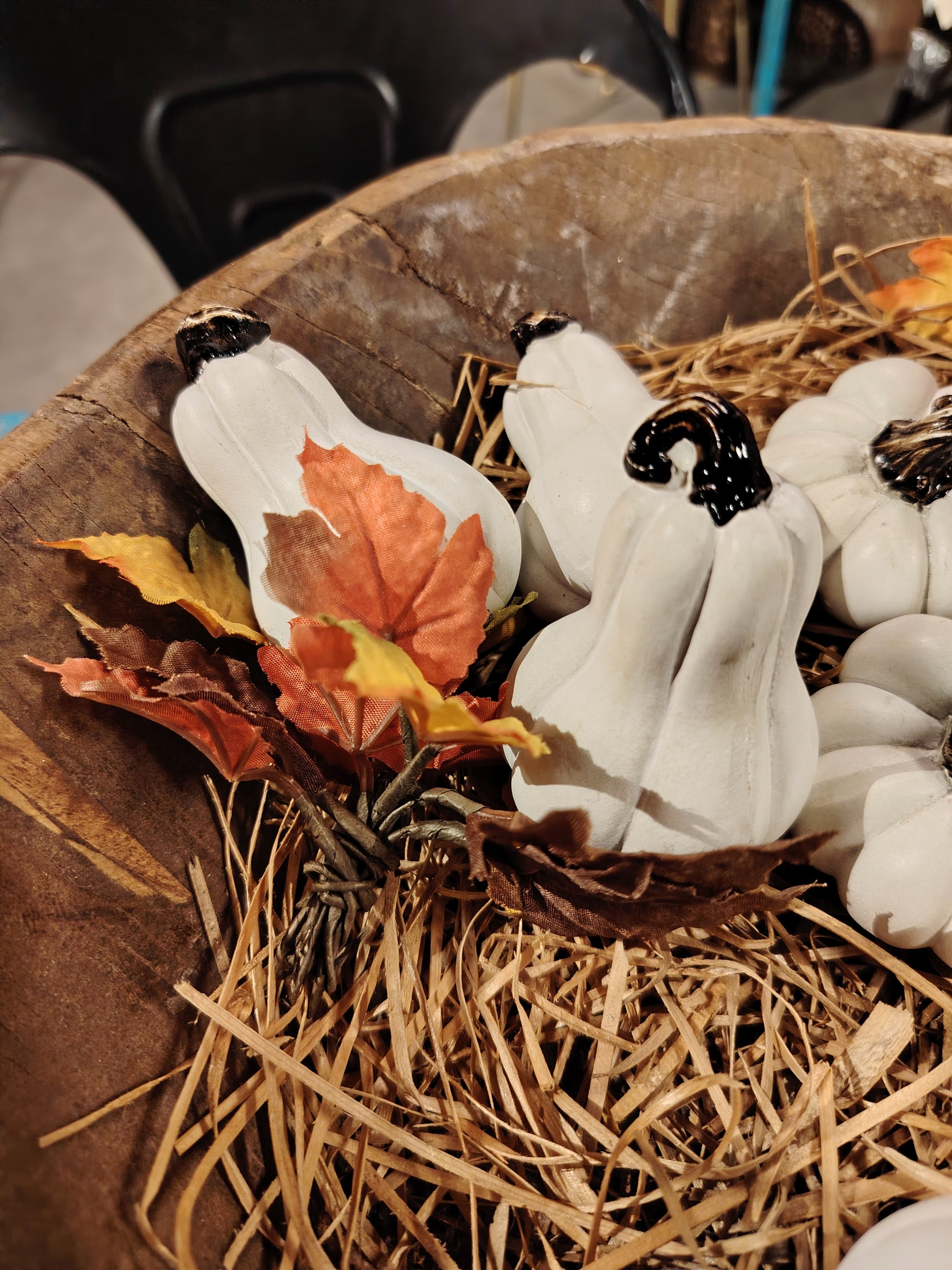 Lite ovalt minigresskar i polyresin. Kun hvite igjen men kan med fordel males om man ønsker.