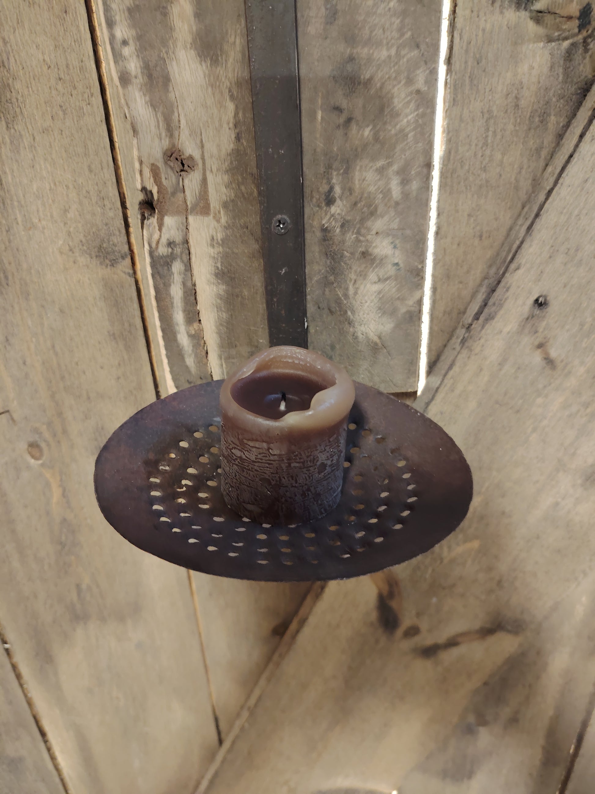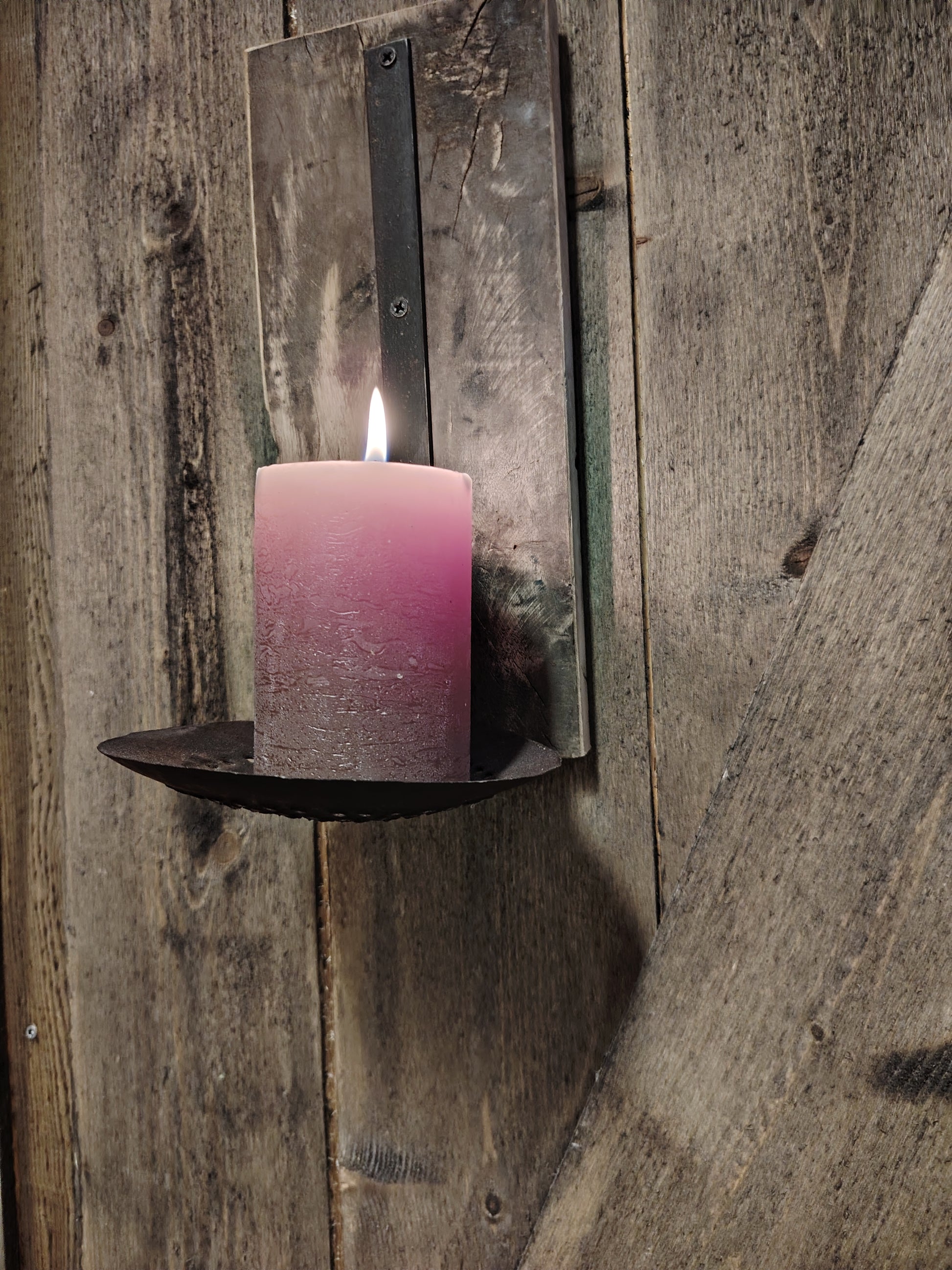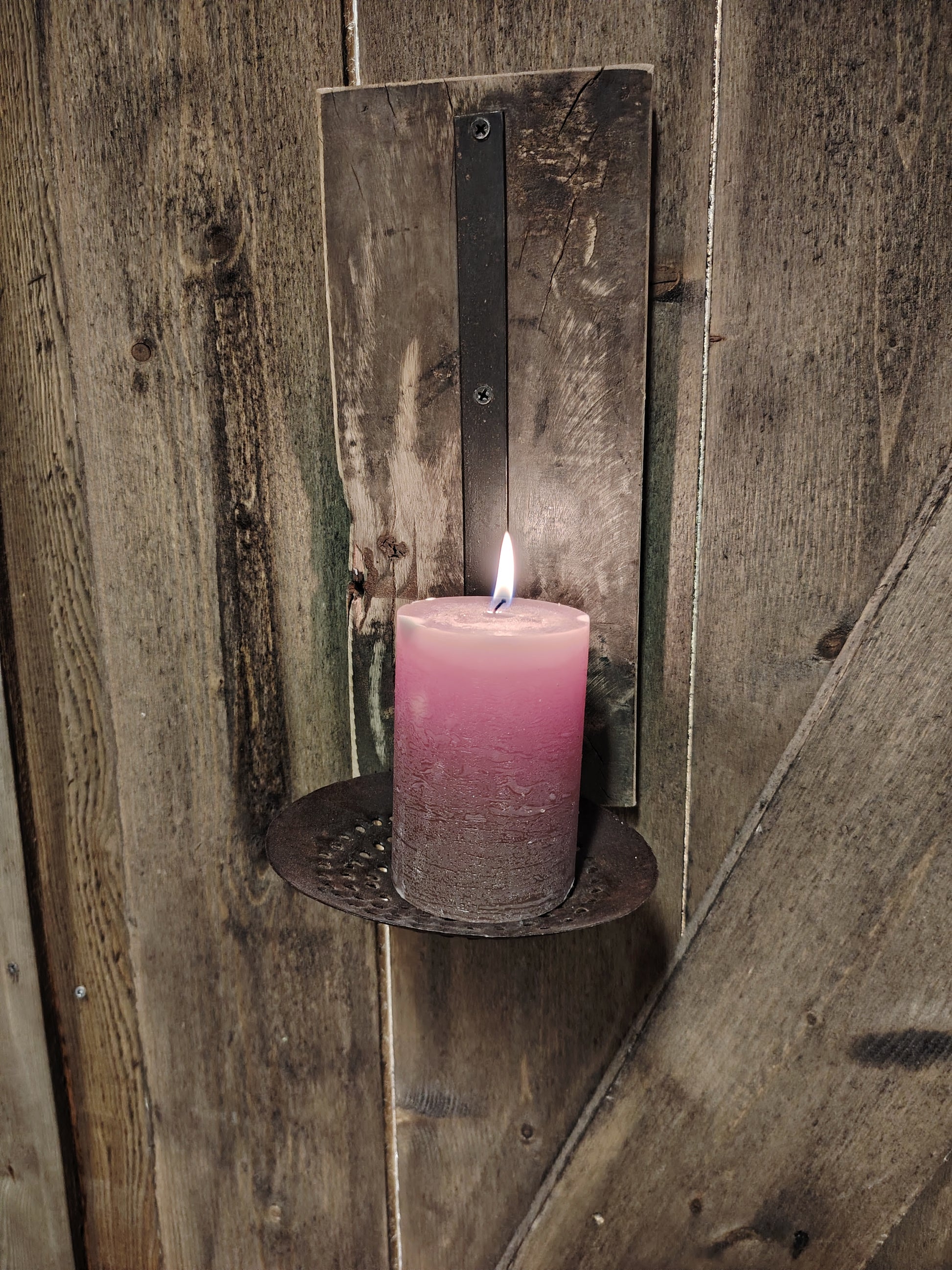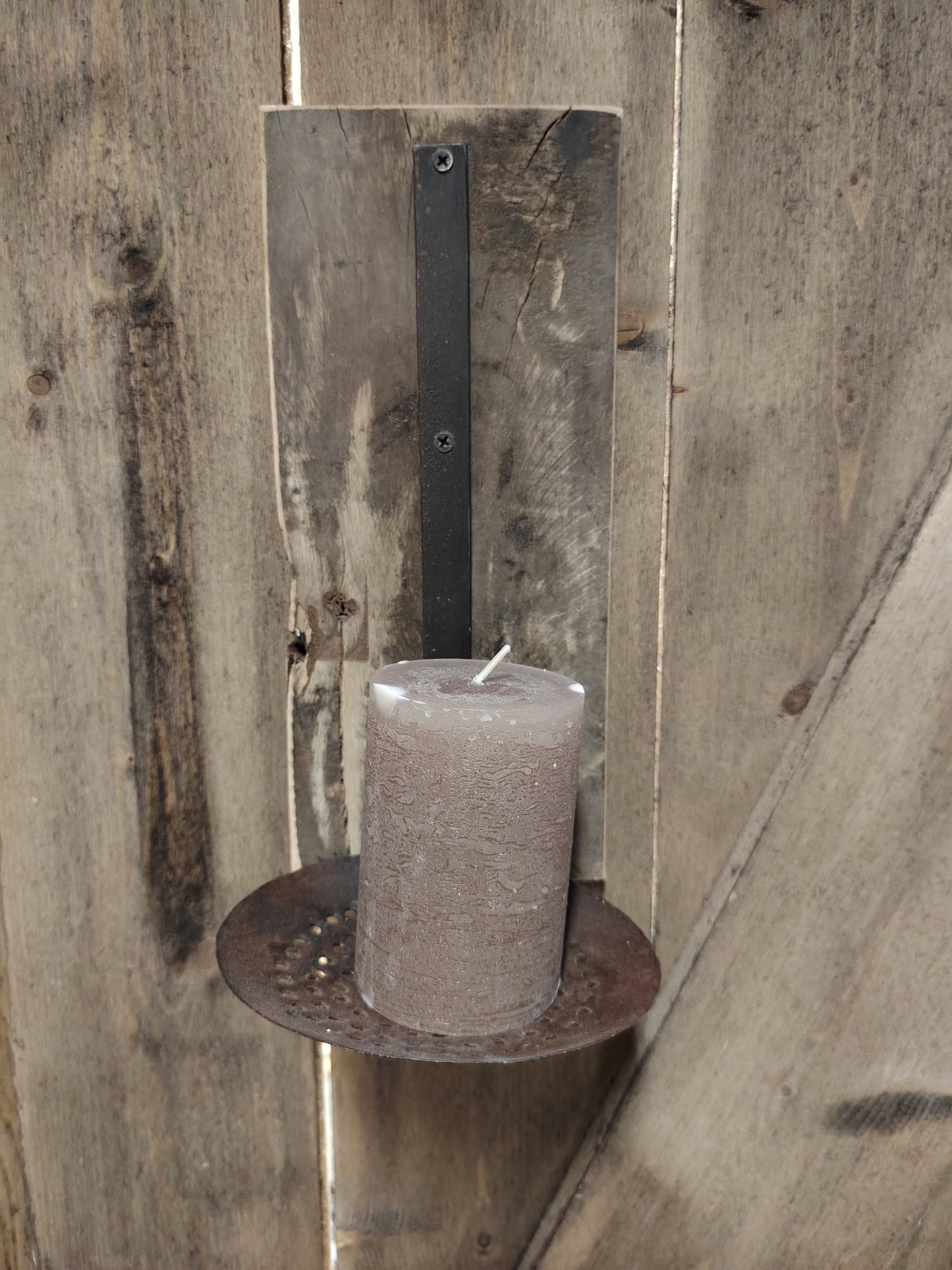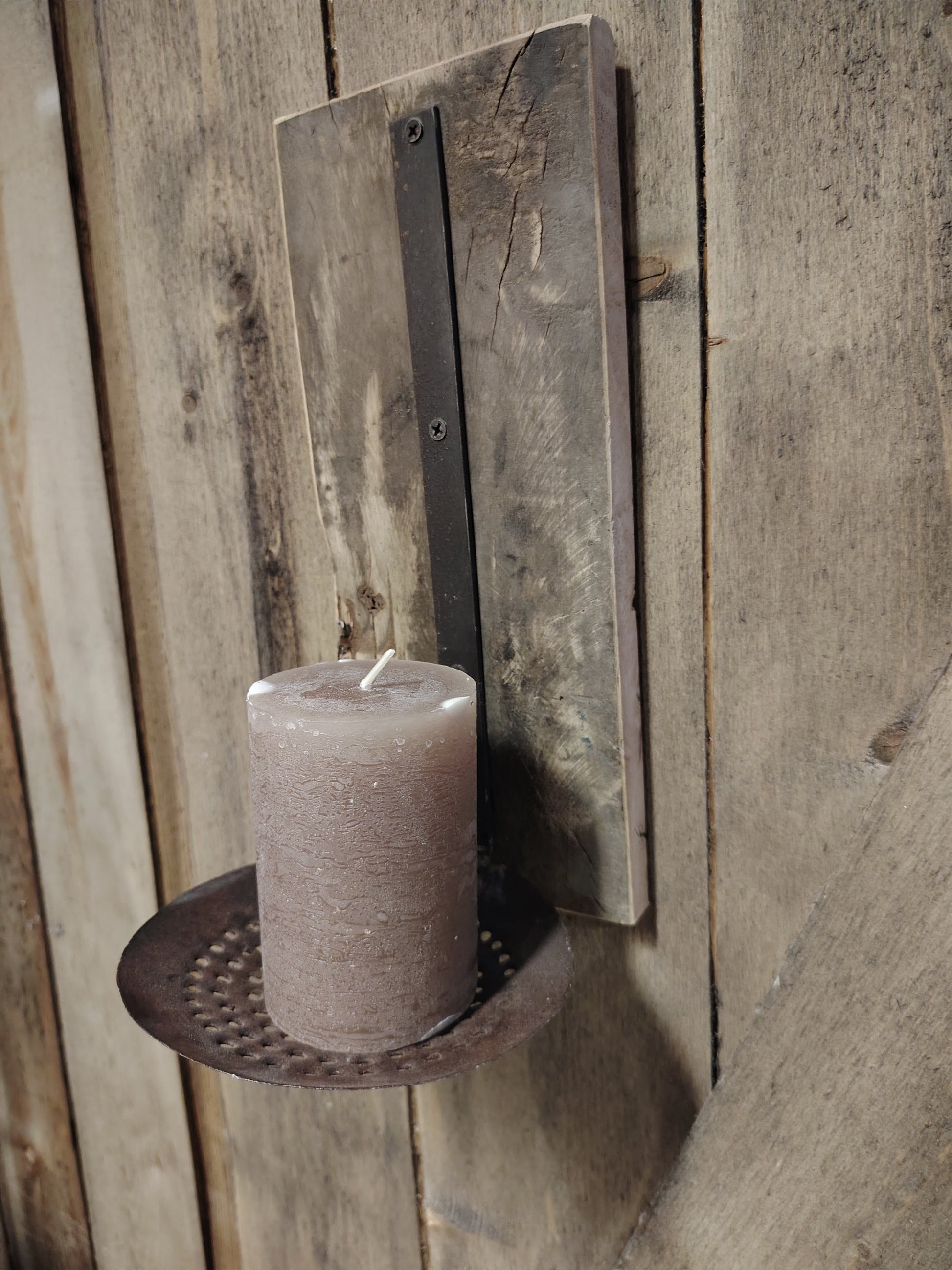 Rustikk lysestake til vegg, håndlaget i India av gjenbruksmaterialer og gammel hulløse.